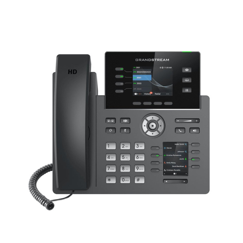 - 5-way voice conferencing to maximize productivity, integrated Wi-Fi, Bluetooth support, full HD audio on both the speaker and handset to provide the utmost clarity, EHS support for Plantronics headsets and USB to support Grandstream’s GUV Series headsets.